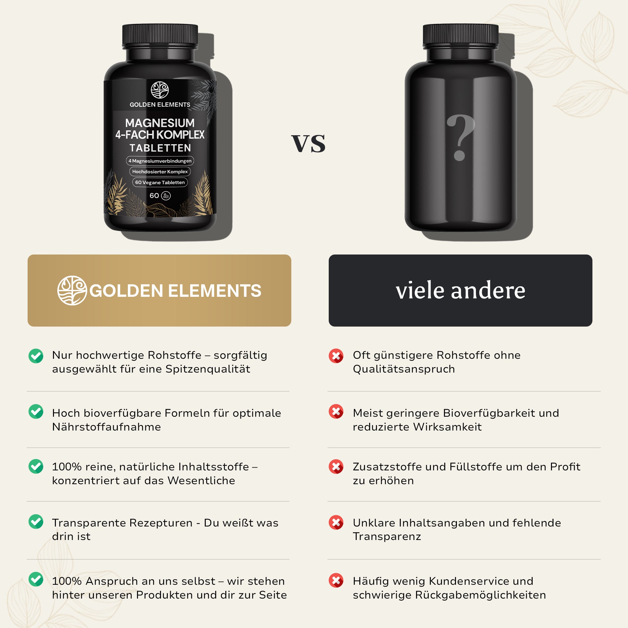 Produkte wie der Golden Elements Magnesium 4-Fach Komplex erfüllen diese Kriterien vollständig – hergestellt in Deutschland, geprüft auf Reinheit und mit klarer Inhaltsstoffdeklaration.