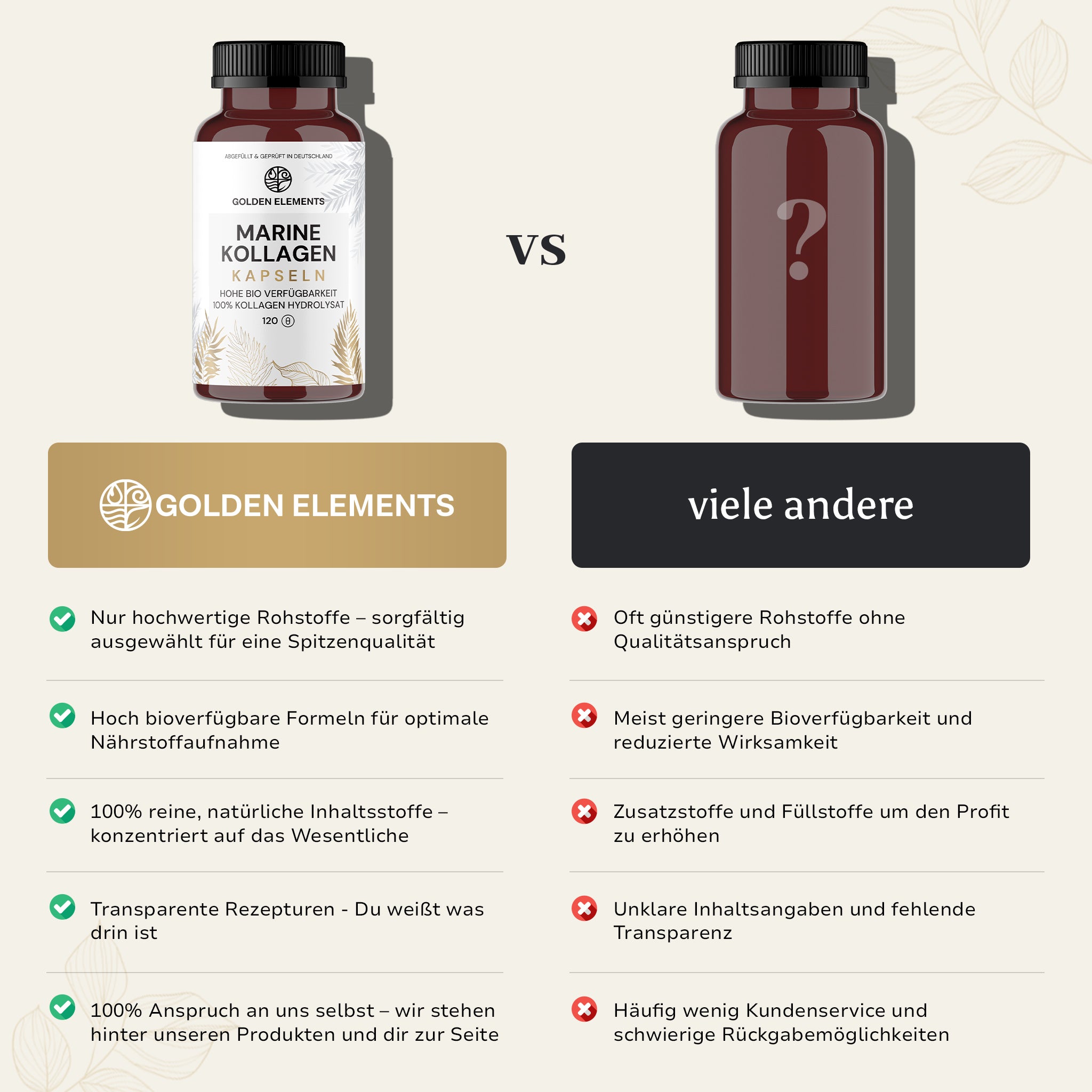 Auch wenn Fischkollagen (Marine) Kapseln eine beliebte Ergänzung zur täglichen Ernährung sein können, gilt: Nahrungsergänzungsmittel sind kein Ersatz für eine ausgewogene Ernährung oder einen gesunden Lebensstil. Menschen mit gesundheitlichen Beschwerden oder während der Schwangerschaft und Stillzeit sollten vor der Einnahme ärztlichen Rat einholen. Alle Angaben zu Fisch Kollagen Marine dienen ausschließlich der allgemeinen Information und stellen keine medizinische Beratung oder Heilaussagen dar.