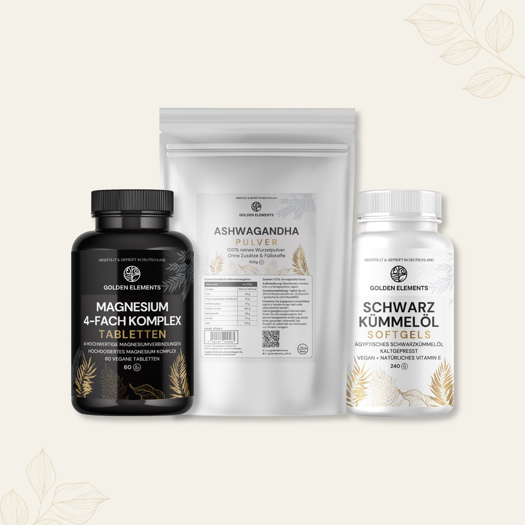 Das Zen Bundle wurde entwickelt für Menschen, die ihren Alltag mit mehr Ruhe, innerer Balance und einer bewussten Nährstoffroutine unterstützen möchten. Enthalten sind drei beliebte Produkte:Ashwagandha Extrakt, Magnesium Komplex und Schwarzkümmelöl Kapseln – eine Kombination, die besonders in stressreichen Phasen und bei Schlafproblemen gerne eingesetzt wird.